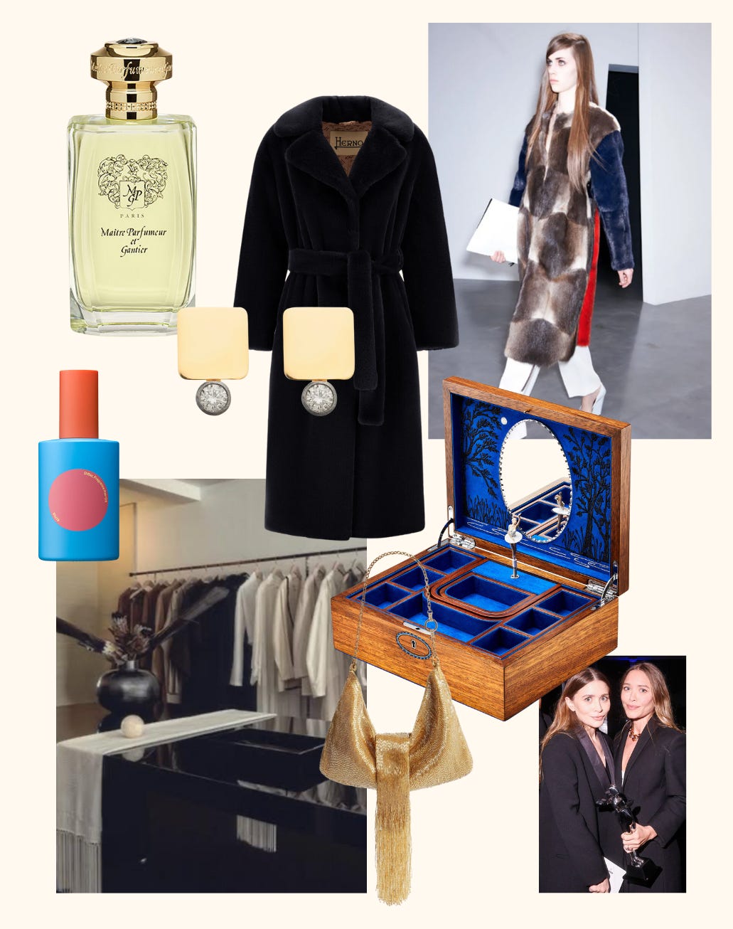 While at The Row, Noora also tried the brand’s black silk Erdene coat, which the twins (now famously) wore to accept their CFDA award this year. As the internet has repeatedly noted, they styled it with a vintage art deco Cartier brooch from Macklowe and a citrine and diamond Cartier collar from F.D. Gallery.