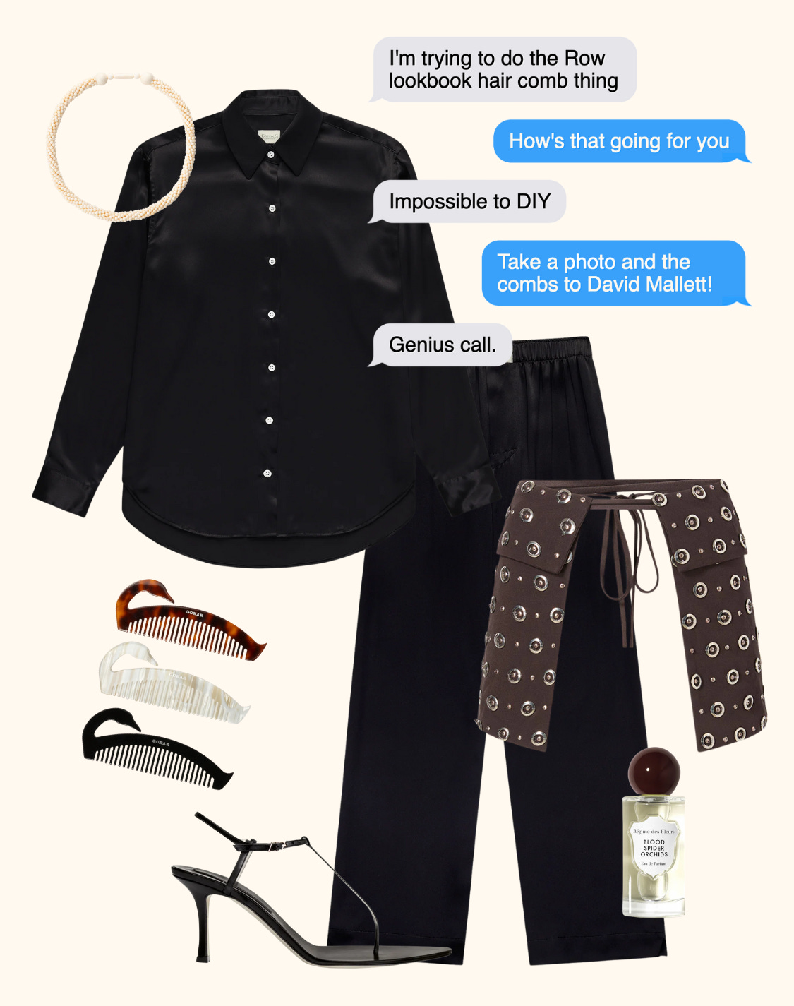 » Sapir Bachar choker // Comme Si shirt and pants // Gohar World combs // CHRISTEN sandals // Regime des Fleurs Blood Spider Orchids // Attersee pocket belt