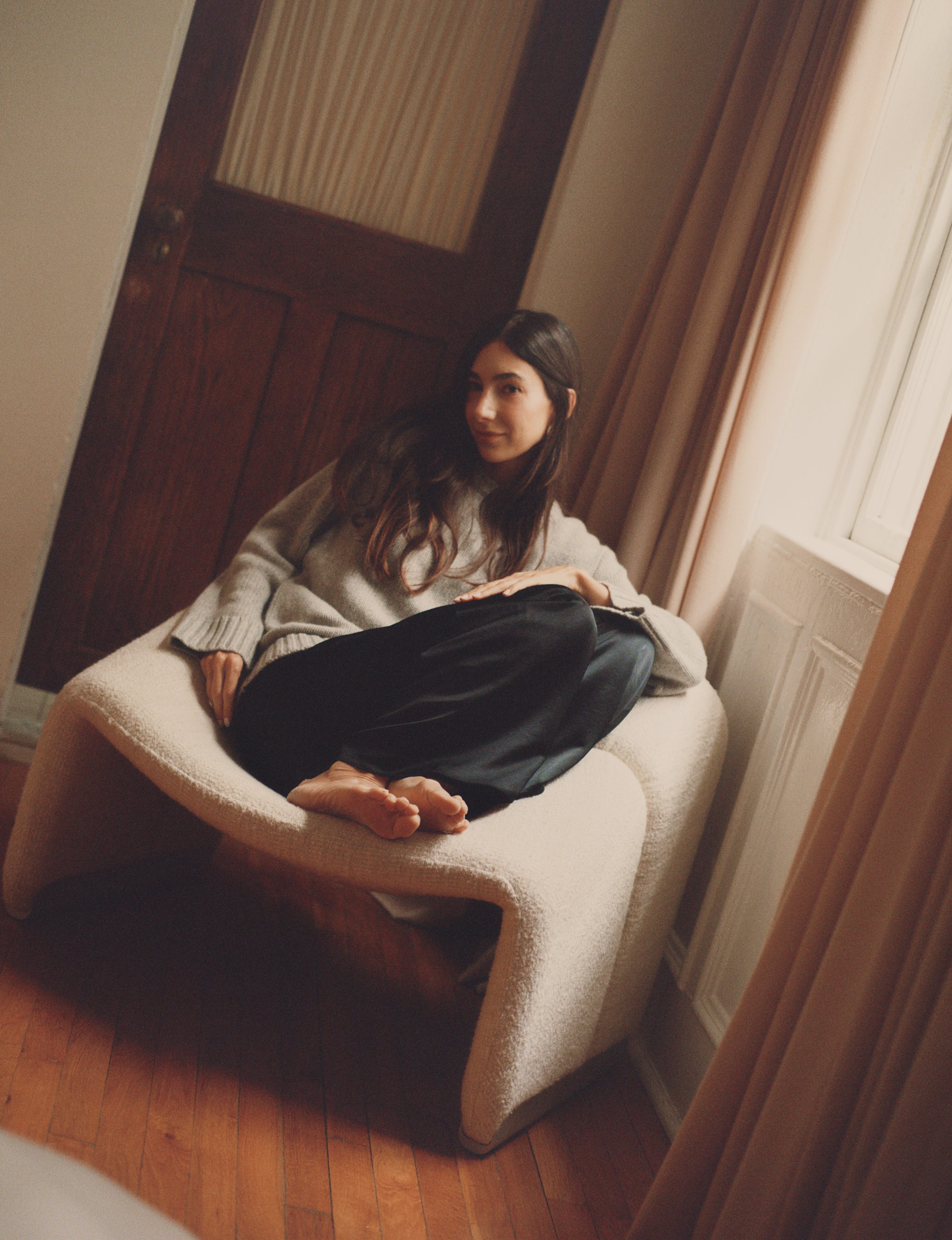 My uniform (the thing I reach for over and over) is: a chunky crewneck from CO and their clutch, which I somehow wear most days and nights. I love everything that brand makes. It’s quality but unfussy. It’s also more cool than chic which I like.