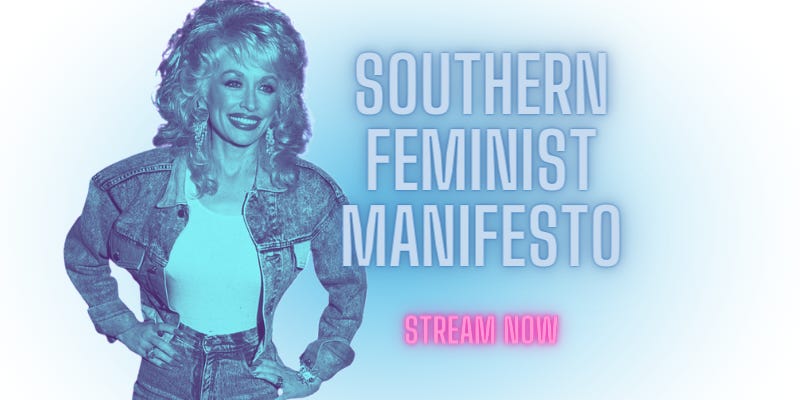 You know I had to send you a playlist to mark the occasion — some of my finest work if I do say so myself. Meet “Southern Feminist Manifesto”, 92 tracks of ’90s and early aught vintage-country feminine power. This is music about hard work and heartbreak, from the likes of Dolly, Jodie, Reba, and Shania. Best enjoyed with girlfriends and cocktails or alone in your car, volume cranked to high heaven.