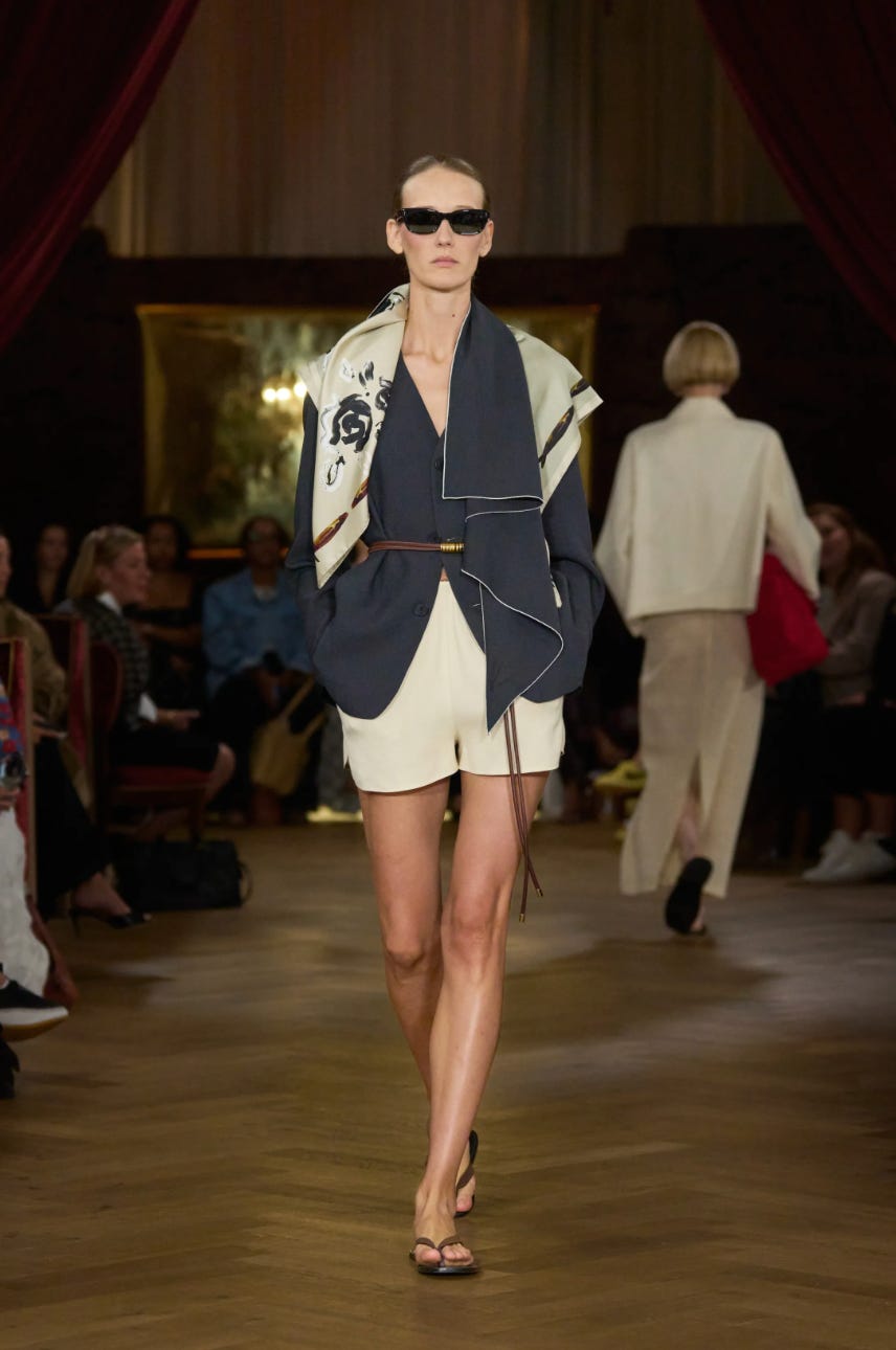 Also now hitting from the spring runways: this Kallmeyer look, which was one of my favorites. The scarf blazer (which I plan to wear as a top) comes with coordinating shorts, or you can opt for the knittie it was styled with above. If you really want to nail it, don’t skip the scarf. (And of course, more weird pants).