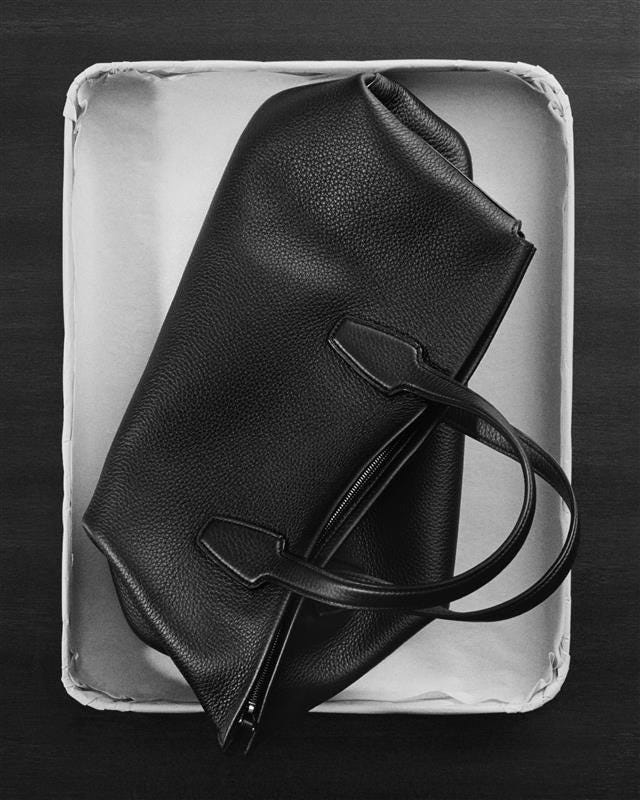 I feel like The Marcel bag is the next big one for The Row. Speaking of which, New York brand Marlies Grace released a well-priced art deco brooch that looks a lot like the vintage Cartier diamond one from The Row’s lookbook.