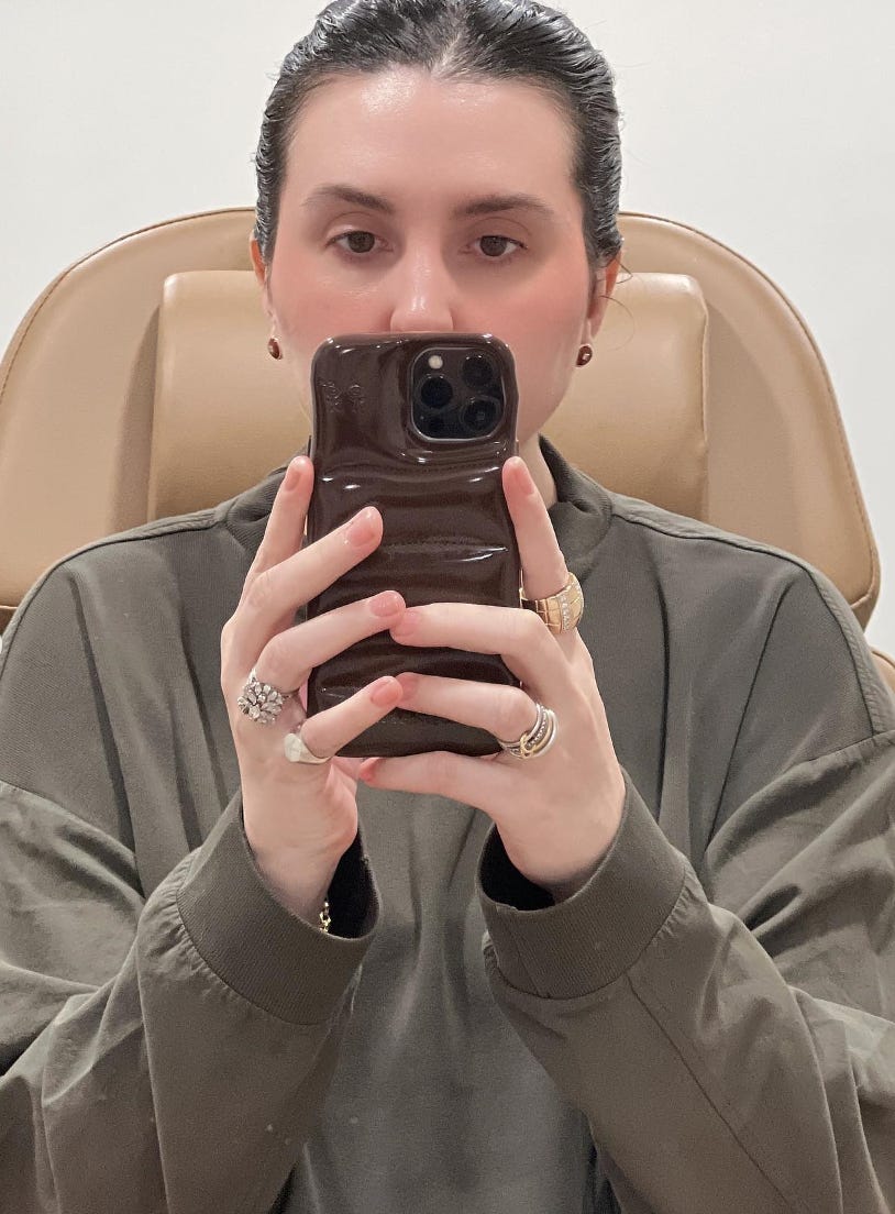 at the Chelsea Hotel Spa, where we got massages, drank tea, and roasted in their sauna. Hair and makeup have not been something I’ve had the time to coddle lately, so I invested in a Keratin treatment at David Mallett to make my hair more wash-and-go, and it worked like a charm. Now I have that cool, undone air-dry hair I’m always craving but can never nail. And I had a lovely Botox touch-up from the ladies at The Brightwood on the UES who use a light hand and get you in and out. Nails have been a no-polish manicure with a swish of The Manicurists’ Active Glow.Since my life has not been my own lately, makeup has been stripped back even more as well. But that’s okay, because I take great care of my skin. De Mamiel sent me a decadent delivery of products after a friend (shout out Kelly) passed along that I was running low on my favorite serum by the brand. Now I’m gaga over their cleanser and oil, too. I’ve been stacking it intermittently with Dr. Diamond’s Metacine serum which is making visible headway with their whole “lift and tone” promise.
