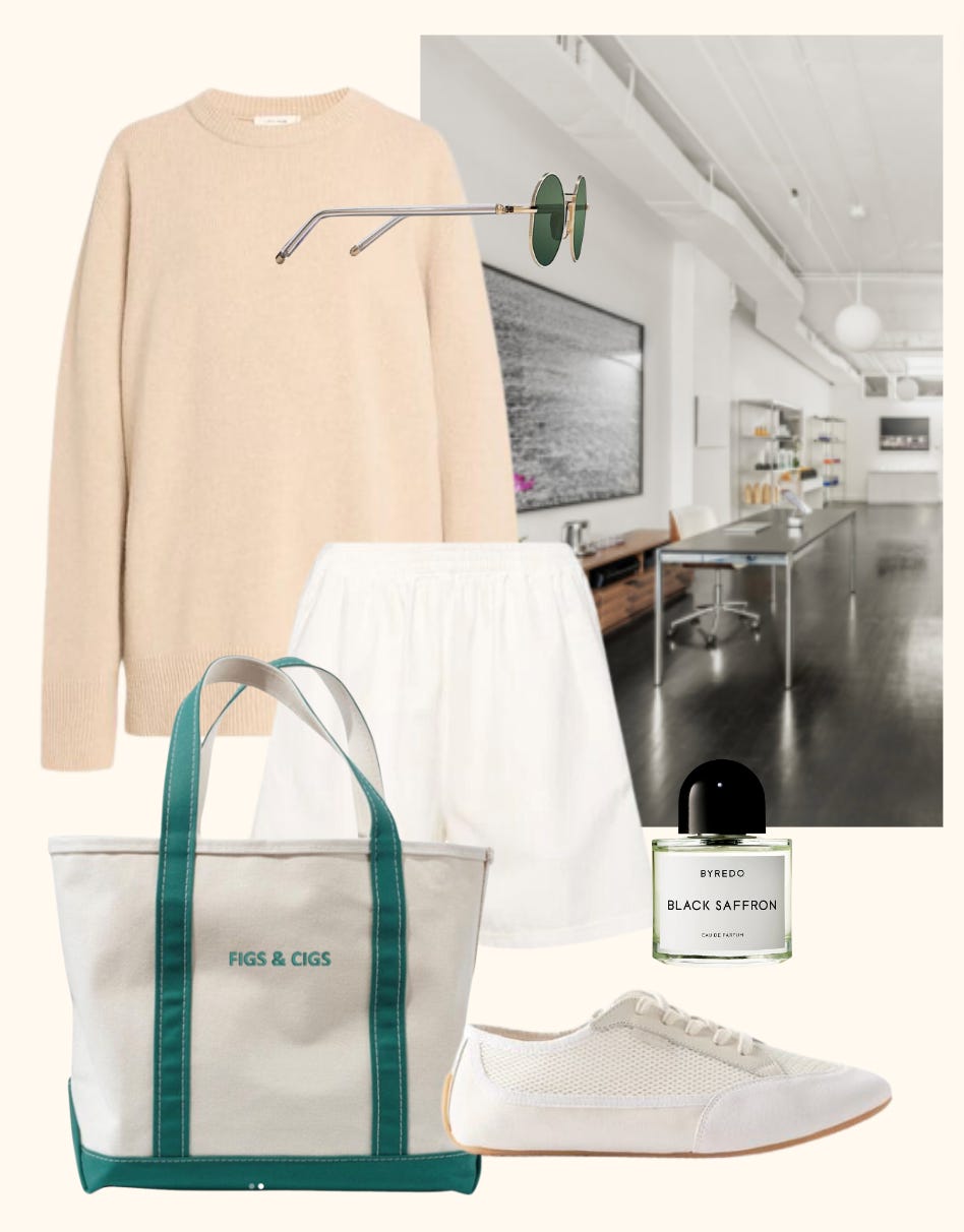 In less relatable news, I’ve been consumed by the arrival of The Row’s summer pieces. These clothes armor me in a way that nothing else does, so I’ve been living in them. However, people on the Internet get really salty about The Row. I have a few buddies who geek out with me, but sharing my outfits, in this case, feels like the last thing anyone else wants to see. So let’s think of it in a tried-and-true formula instead — this formula — shorts + jacket + flats.