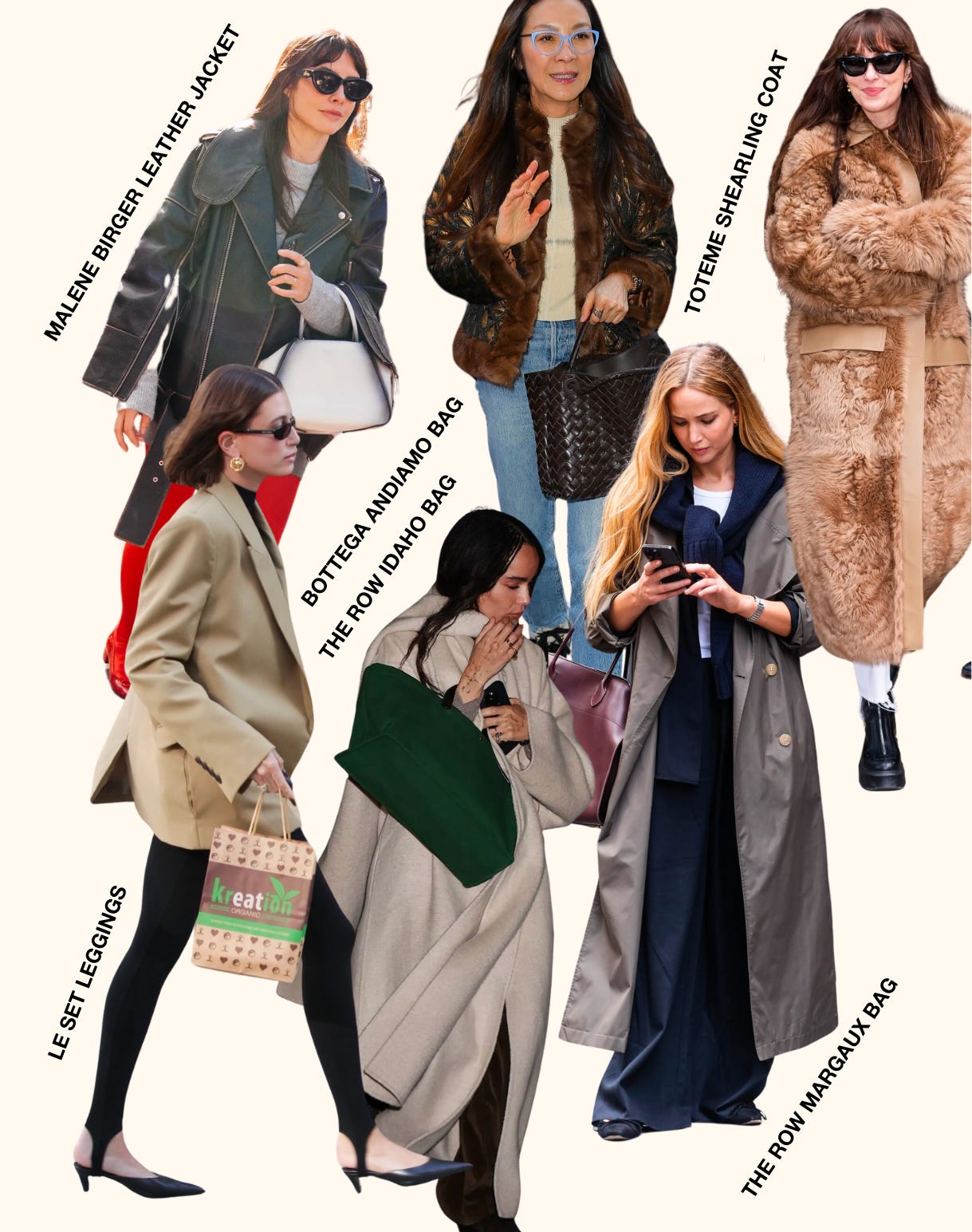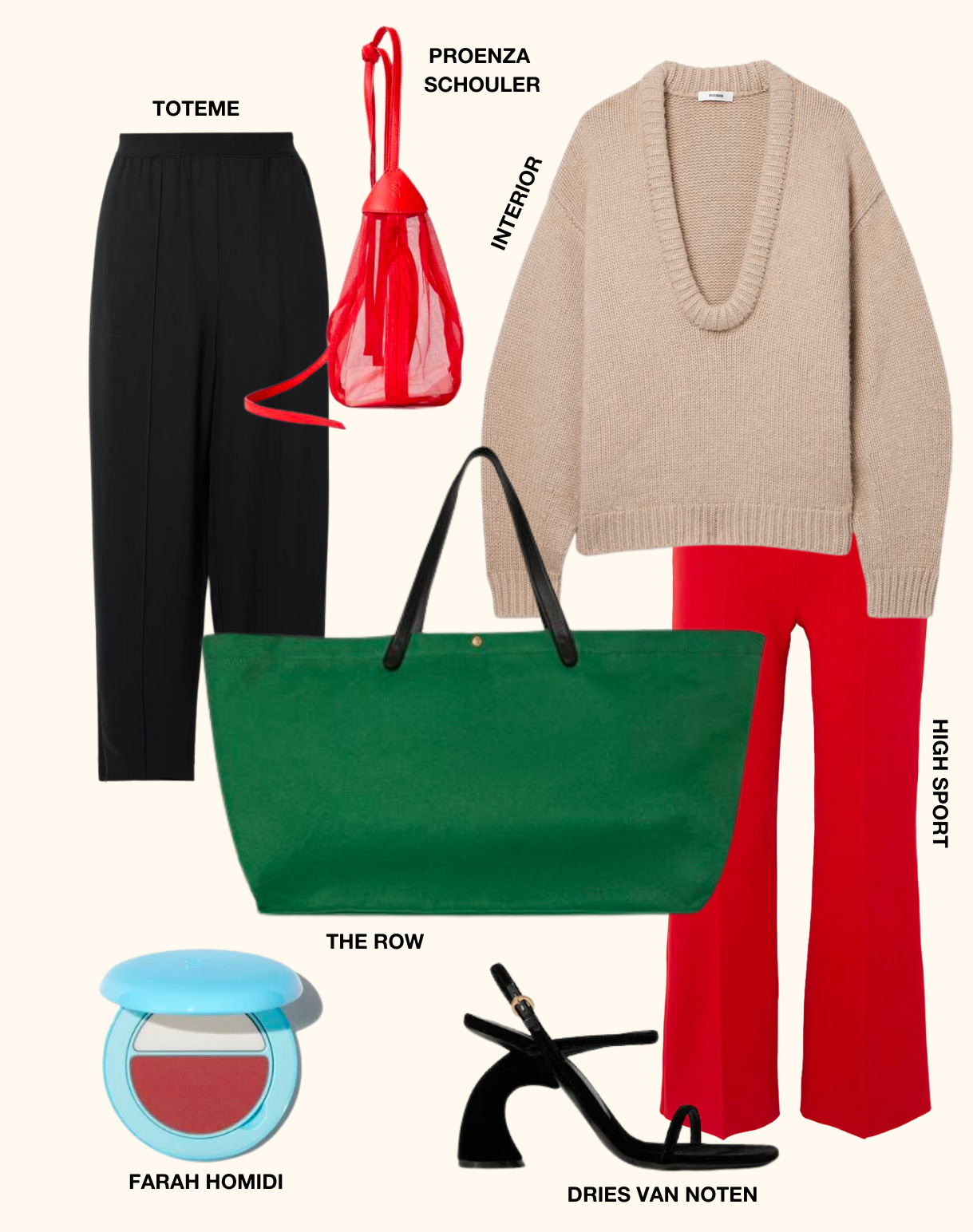 While The Row’s Gala pants and High Sport’s ubiquitous kick flares far outpaced other styles, Toteme held their own with the brand’s classic zip leggings (though I’m seeing a creeping tilt towards stirrup styles, like Leset’s Rio leggings) and new elastic-waisted sport trousers (a personal favorite, I sized down). It makes sense that we’re craving forgiving, comfortable styles — but we still want things that telegraph a little polish.
