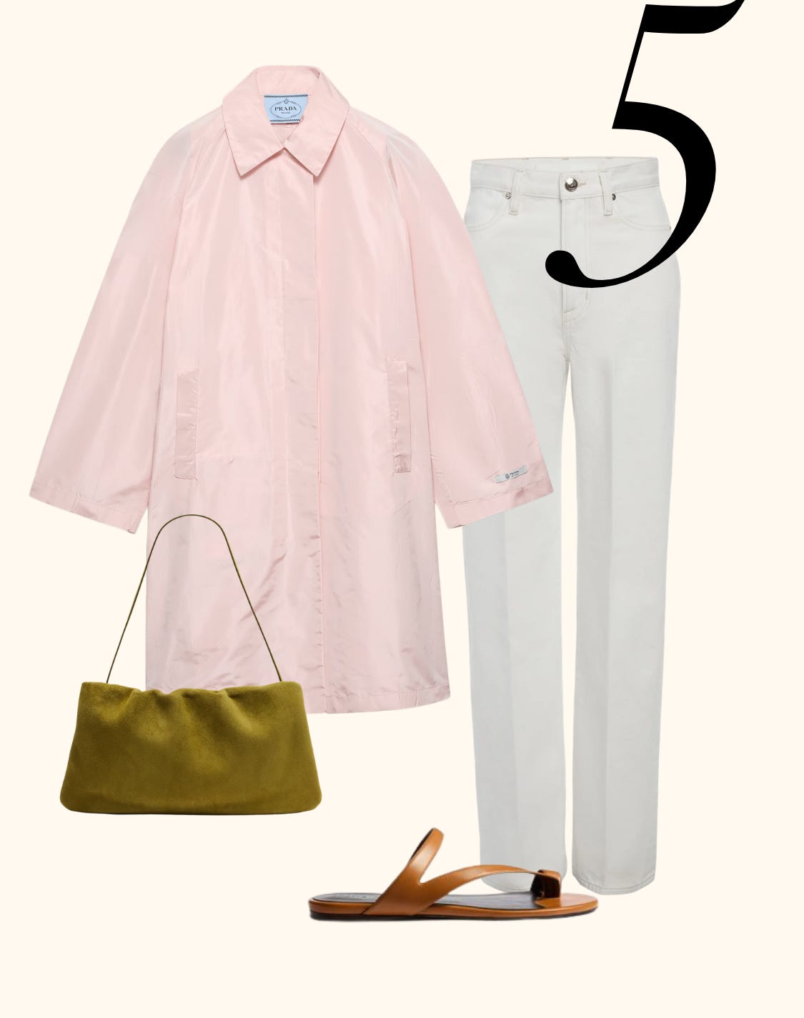 5: Prada coat, RUADH jeans, The Row bag, Khaite sandals