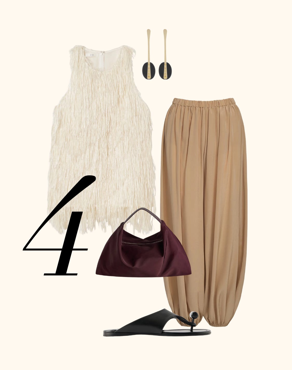 4: CO top, Lisa Eisner earrings, AFLALO pants, Attersee bag, Loewe sandals