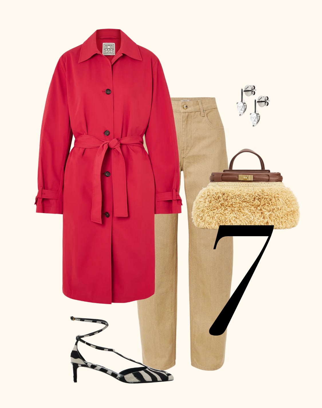 7: Toteme trench, OSSOU jeans, Dorsey earrings, Janessa Leone bag, Khaite pumps