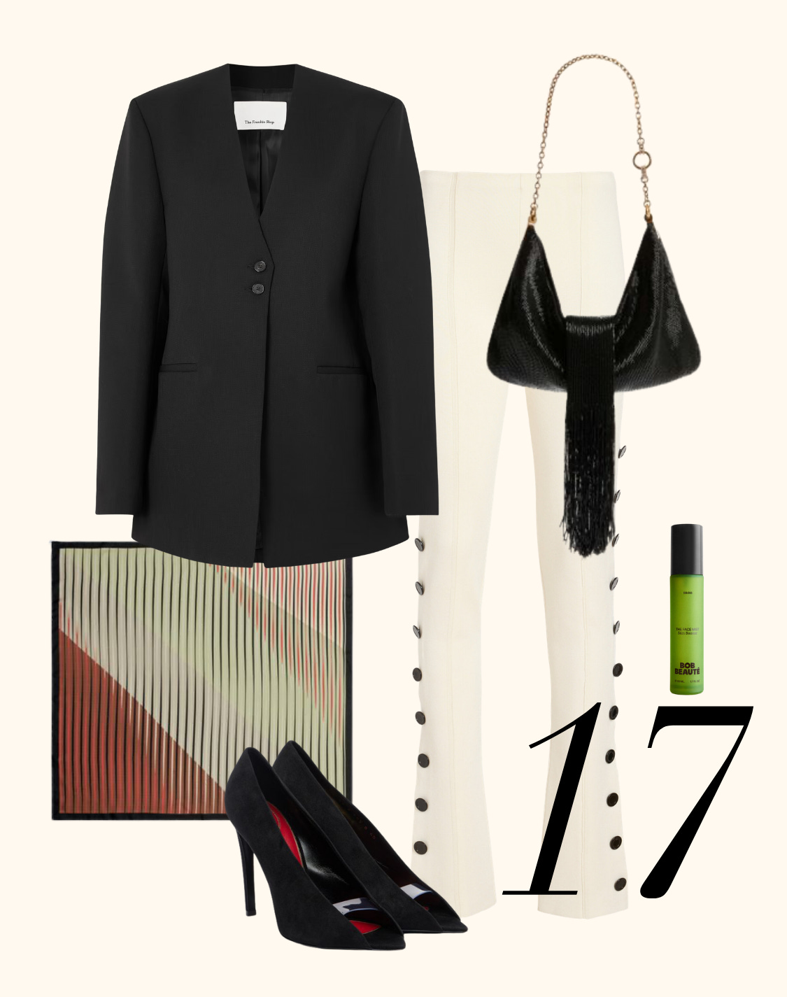 17: Frankie Shop blazer, The Veil bag, Kallmeyer scarf, Valentino pumps, Proenza Schouler pants, Bob Beaute face mist (THELOVELIST15)