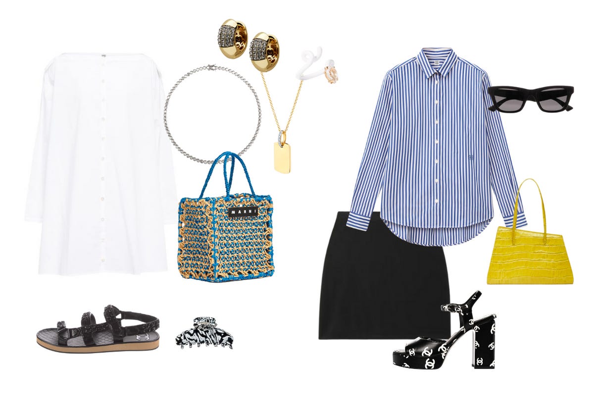 This poplin Toteme mini dress was undoubtedly the hardest worker of the trip, and the most complimented — followed closely by a good pair of flat sandals I bought on day one. I found the blue woven bag at Marni Market, the brand’s Meatpacking outpost of limited-edition, handcrafted accessories (at great prices). I always bring a black bottom and a button-down in every suitcase, too. For this trip, it was a super-packable Anine Bing mini skirt which looked great with a pair of platforms. The chartreuse bag by Little Liffner is surprisingly roomy for its size. I was able to fit my wallet, sunglasses, and lip gloss comfortably. All of my jewelry lately is by Dorsey!