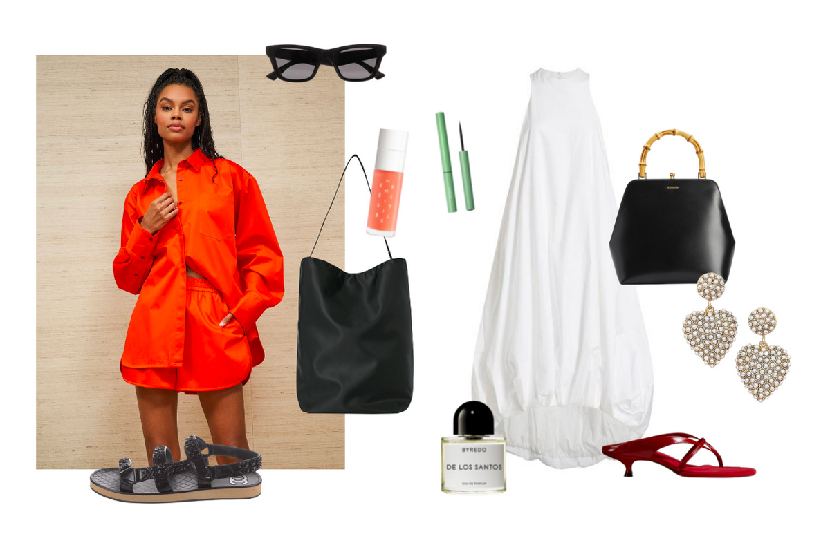 This La Ligne set was a last-day purchase after seeing almost every girl at Bergdorf’s in some combination of a chic matching set or a color-saturated cotton shirt dress. #Influenced. The slouchy Nylon bagwas purchased after seeing a woman on the street make it look so great and so New York, I looked it up on the spot. #InfluencedAgain. This white Khaite dresswas a sale find for around 70% off — the open back and light cotton made it a serious winner for walking around the city without looking like the sweaty slob I felt like. The coordinating red sandals were a find from the same sale. The beauty counters at Bergdorf’s were also good to me! I found a perfect shade of the sought-after Hermes lip oil, and what might be my favorite eyeliner ever by Byredo, where I also picked up a new perfume. The bamboo-handle bag also worked great against the backdrop of the city — summery in shape, sleek in practice. And you know I had to do a cute heart earring. This is The LOVE List, after all.