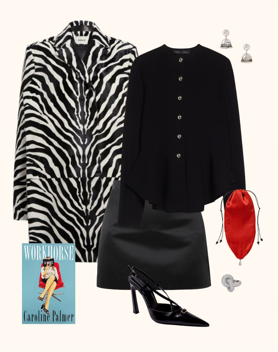 » Khaite coat, Proenza Schouler jacket, Lisa Yang skirt, Sophie Buhai earrings and bag, Engelbert ring